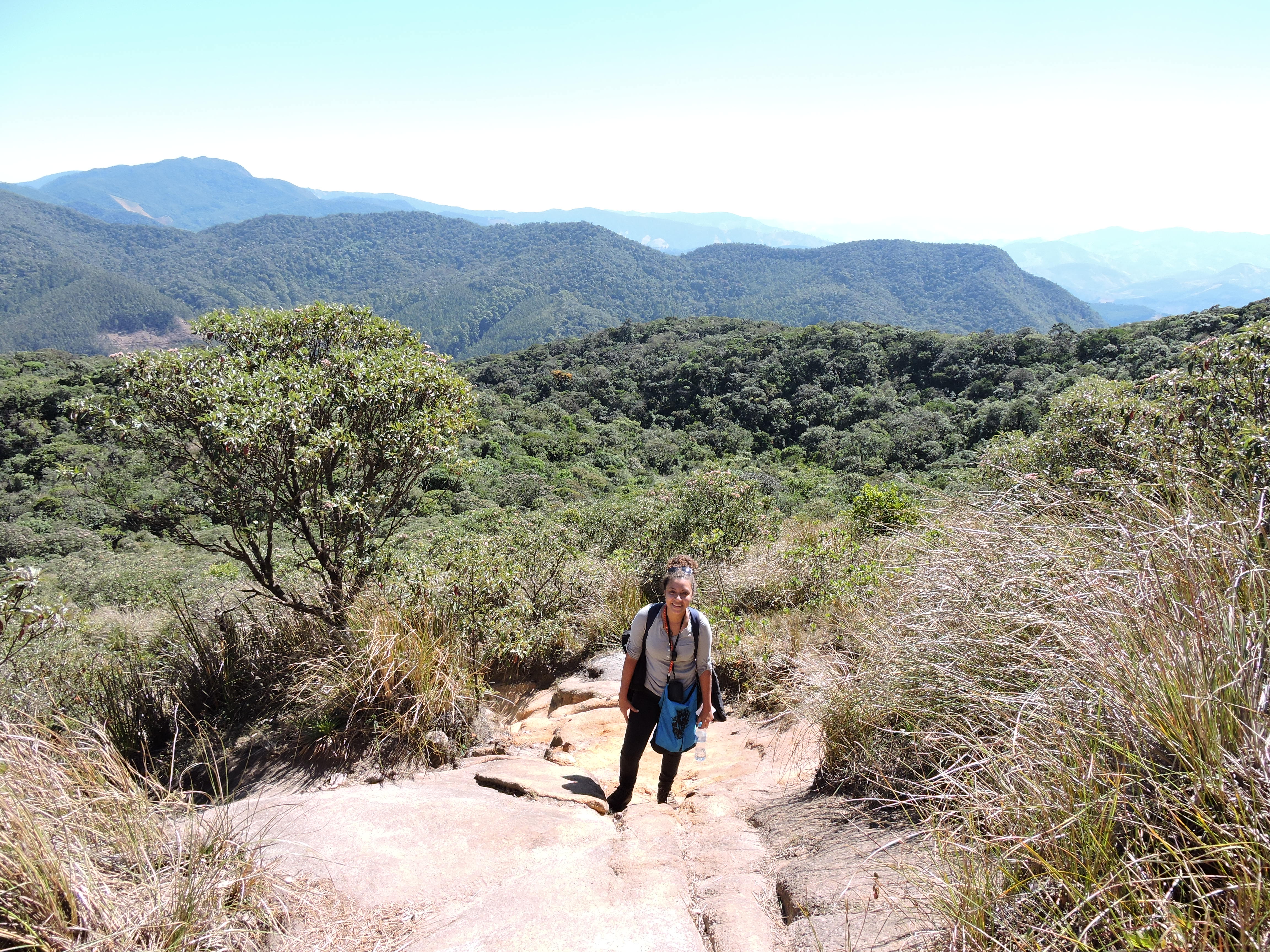 Eu nasci em Ilhéus, uma das primeiras cidades a serem fundadas no Brasil. É uma cidade litorânea, onde existem belíssimas paisagens, e uma rica flora, mesmo que seriamente antropizada. Desde pequena, sempre me interessei por plantas, principalmente pelas flores, que sempre me encantaram. No entanto, o interesse pelas briófitas só ocorreu a partir da metade do meu curso de licenciatura em Biologia na Universidade Estadual do Sudoeste da Bahia (UESB). Inicialmente, senti-me frustrada com a Botânica, pela forma como costumava ser ensinada nas escolas de ensino médio do Brasil, e não queria fazer pesquisas sobre o assunto. Mas ao ingressar na faculdade, comecei a me apaixonar por essa ciência, inicialmente dedicando-me ao estudo das Pteridófitas. Um amigo, o Dr. Anderson Ferreira Pinto Machado teve o papel fundamental de me instigar a olhar para as briófitas. Quando comecei a olhar para as briófitas em campo, e a ter curiosidade de conhecer aquelas pequenas plantas, deparei-me com um microscópico mundo novo. Sentia que estava lidando com a história do mundo, manipulando plantas tão antigas e excelentes na tarefa de persistirem na natureza, mesmo com suas limitações. Encantei-me com as adaptações morfofisiológicas, com suas formas e cores. Percebi que muitas pessoas não as viam em campo, e que no Brasil existia (e ainda existe) uma lacuna sobre o conhecimento das briófitas. Isso foi em 2010.